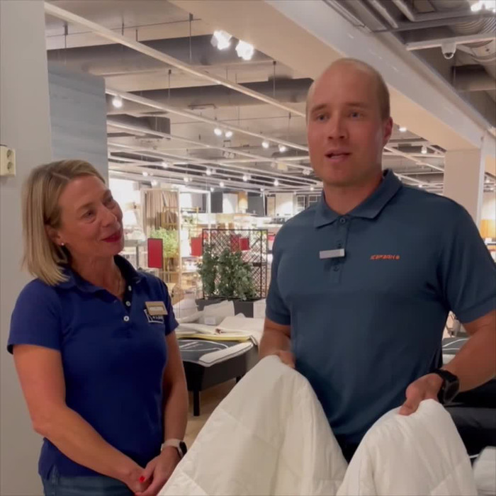 Sängynvalinta aloitetaan JYSKissä aina nukkumisen asiantuntijan tekemällä alkukartoituksella. Inkin kohdalla Laura aloitti keskustelemalla hänen yksilöllisistä tarpeistaan, kuten missä asennossa Inkki yleensä nukkuu, esiintyykö selkä- tai niskakipuja sekä millaisia ovat hänen omat mieltymykset sängyn tuntumasta. Näiden tietojen perusteella Laura valitsi laajasta valikoimasta kolme sänkyvaihtoehtoa, joita Inkki lähti kokeilemaan.