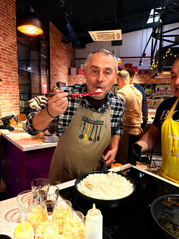 Împărțiți în echipe, colegii au trebuit să asculte invitațiile chef-ului CulinaryOn, să respecte pașii rețetelor și să gătească trei preparate delicioase: piept de rață tataki cu salată daikon – un tip de ridiche albă gustoasă, somon teriyaki cu orez și, la desert, orez cu lapte, iasomie și mango.