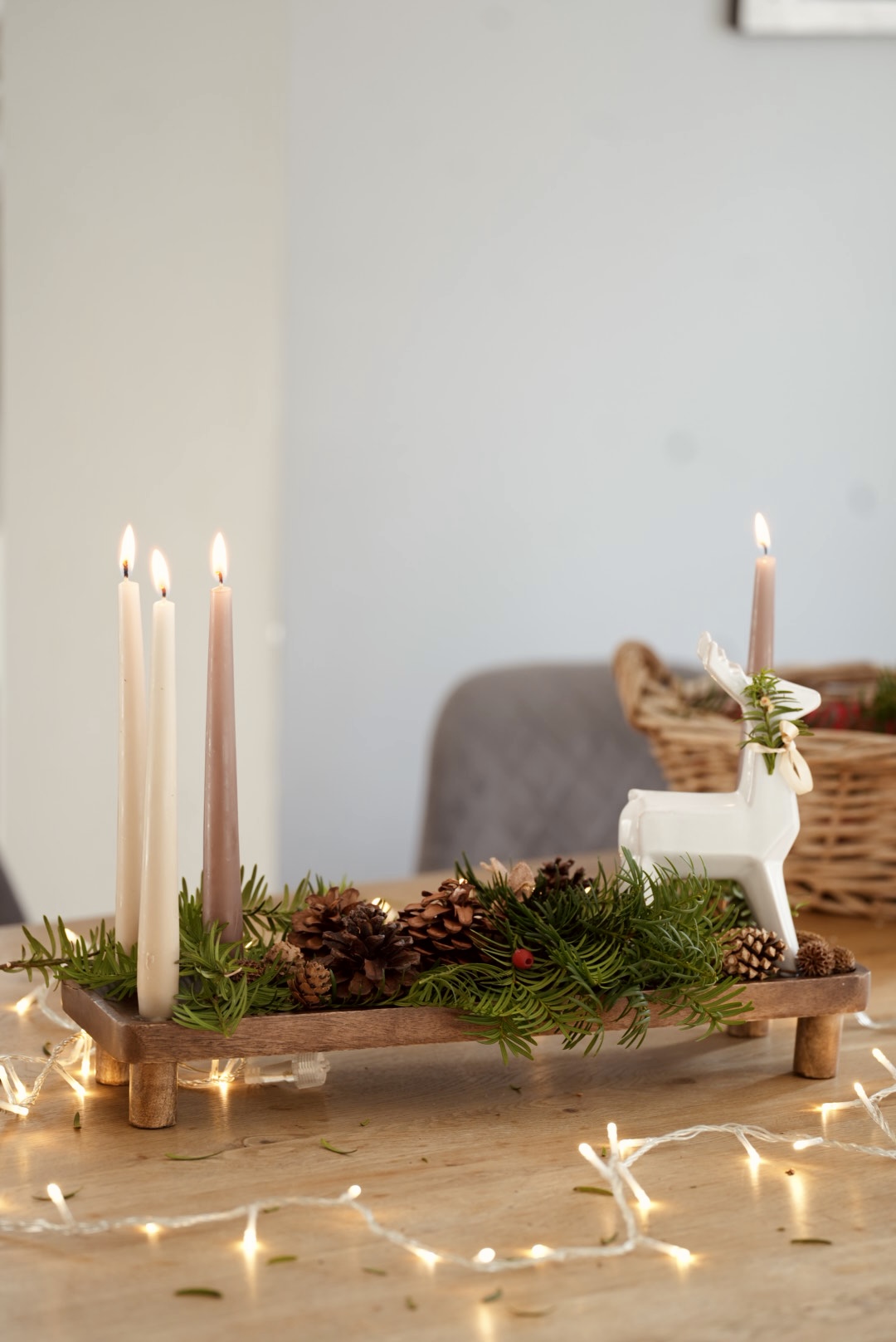 - Dodajte dekoracijo, ki ima učinek – na pladenj dodajte okrasno drevesce, palčka ali severnega jelena.
